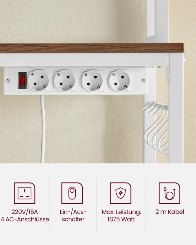 Η ενσωματωμένη πολύπριζα αυτού του ραφιού παρέχει προστασία από υπερφόρτωση, προστασία από διαρροές και, επειδή είναι εξοπλισμένη με διακόπτη on/off, μπορεί να απενεργοποιηθεί όταν δεν χρησιμοποιείται – όλα για την ασφάλεια σας!