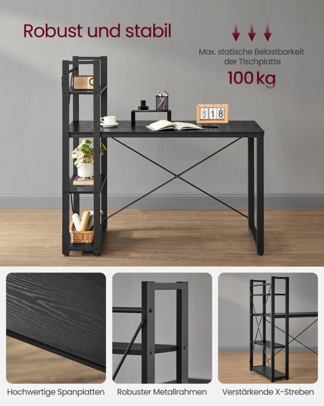 Γραφείο VASAGLE με Ράφια, 120 cm, Ebony Black