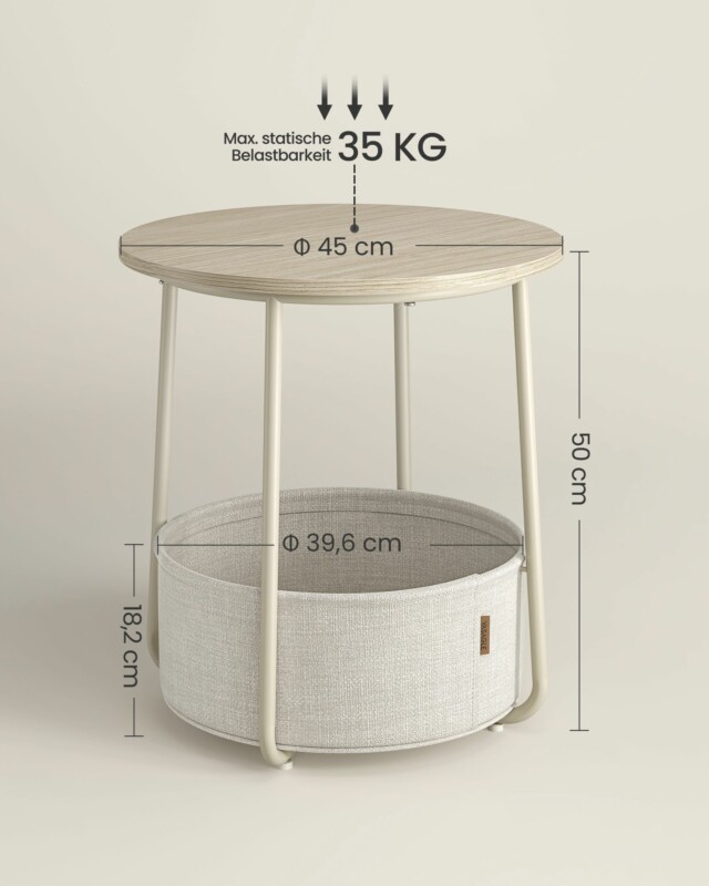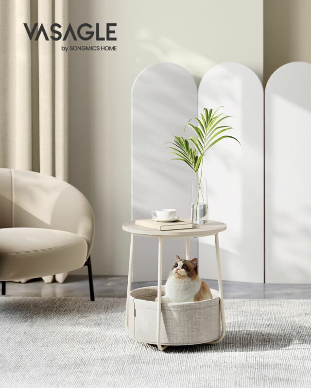 VASAGLE Μικρό Στρογγυλό Τραπεζάκι με Καλάθι Αποθήκευσης, Μοντέρνο, Λευκό