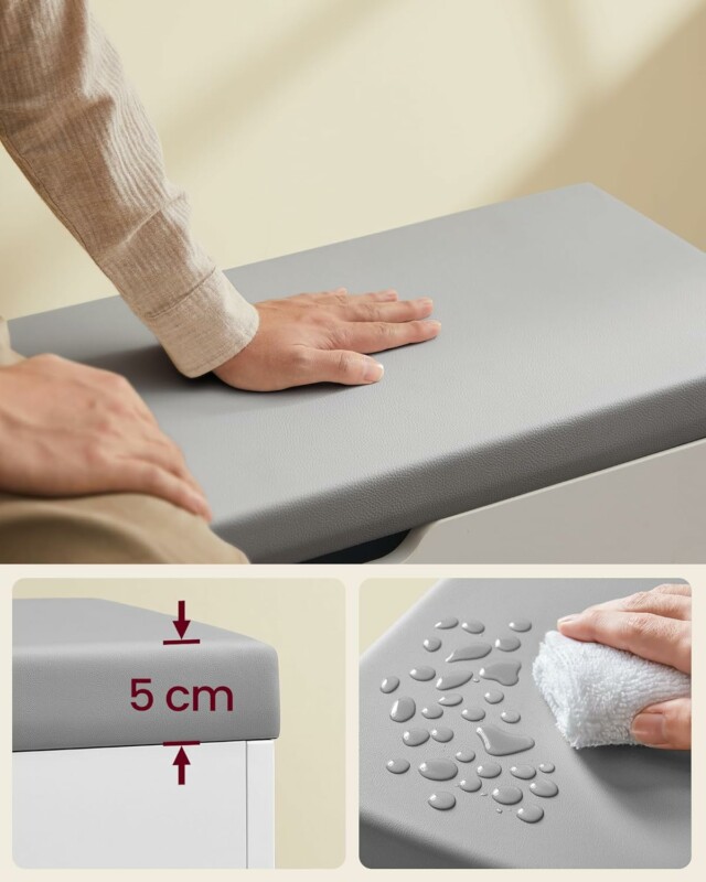 Το 4 cm παχύ και επενδεδυμένο μαξιλάρι καθίσματος είναι καλυμμένο με ανθεκτικό και εύκολο στη φροντίδα PU και προσφέρει υψηλή άνεση καθίσματος για να φορέσετε ή να βγάλετε τα παπούτσια σας και να χαλαρώσετε τα πόδια σας.