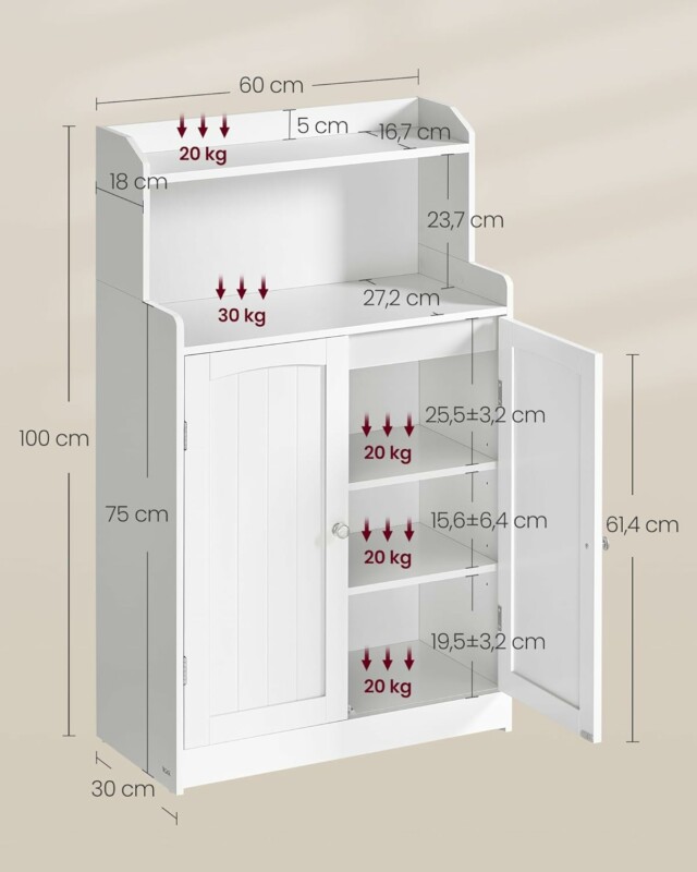 - Μέγιστη στατική χωρητικότητα δεύτερου ανοιχτού ράφι: 30 kg