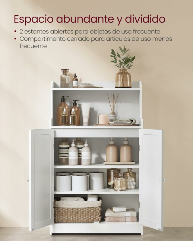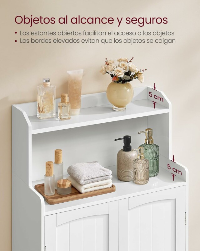 Πίσω από τις πόρτες, υπάρχουν 2 ρυθμιζόμενα ράφια σε 3 ύψη για να φιλοξενήσουν αντικείμενα διαφορετικών μεγεθών. Είτε πρόκειται για ψηλά μπουκάλια σαμπουάν, διπλωμένες πετσέτες ή μικρά δοχεία, όλα θα χωρέσουν!