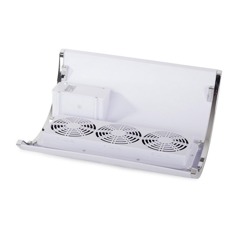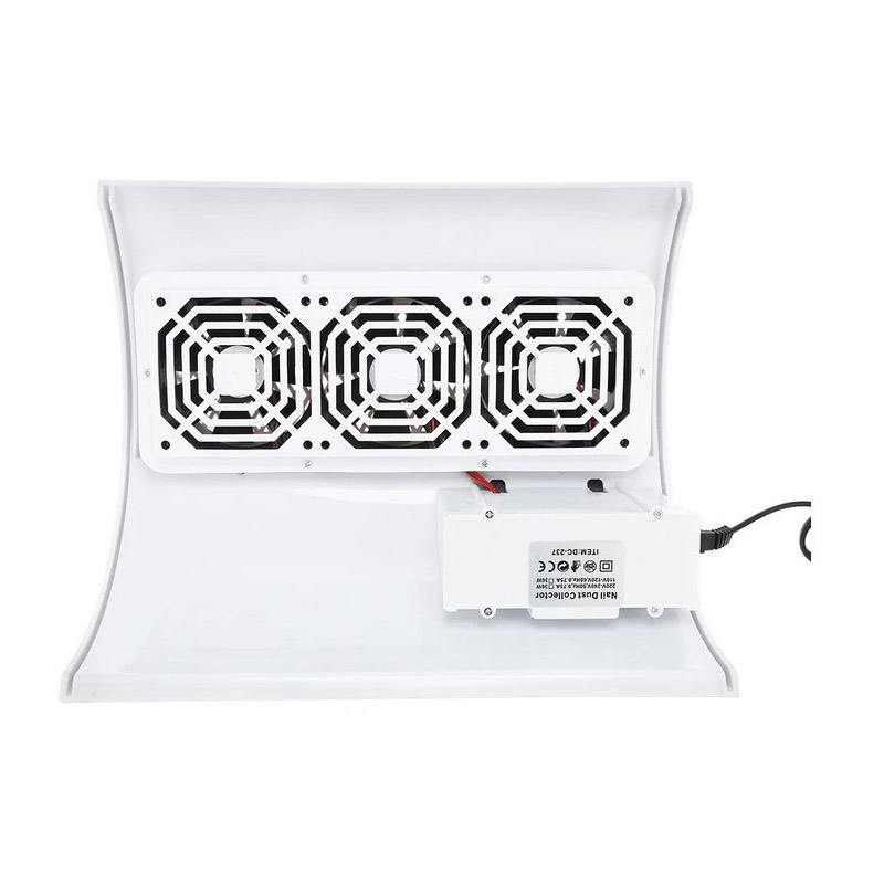 Η συσκευή είναι εξοπλισμένη με 3 ισχυρούς ανεμιστήρες που απορροφούν τις περισσότερες κοιλότητες των νυχιών. Συνοδεύεται από δύο θήκες που προσαρμόζονται στους ανεμιστήρες.