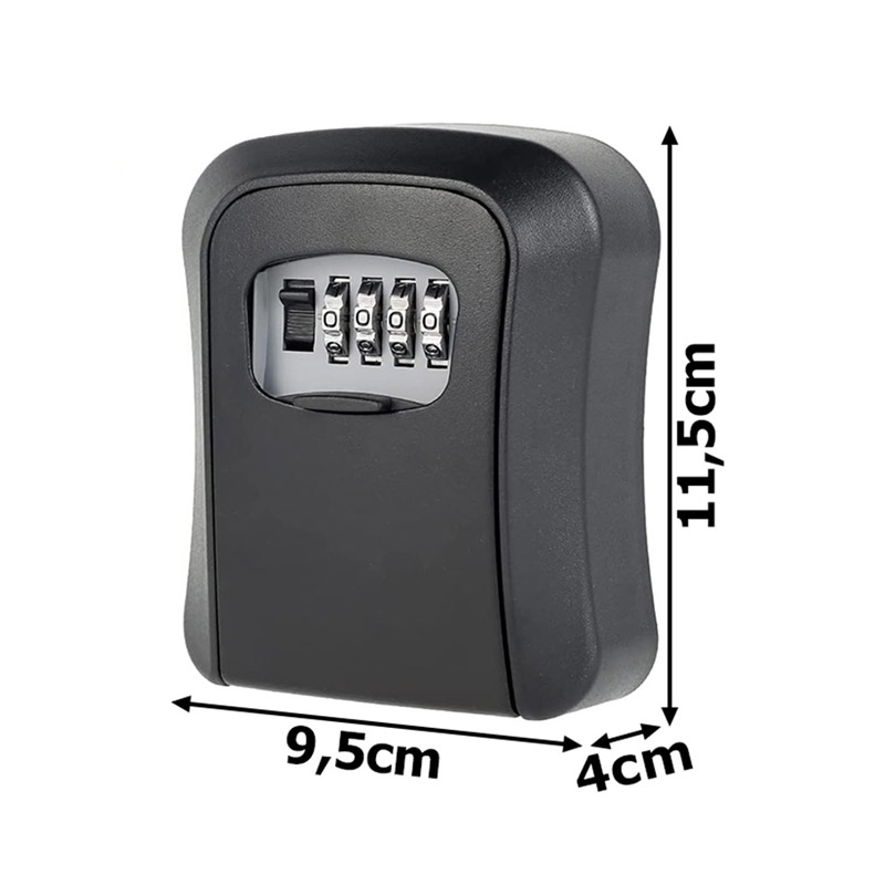 Με μια κλειδαριά από ατσάλι συνδυασμού 4 ψηφίων, μπορούν να ρυθμιστούν έως και 10.000 διαφορετικοί συνδυασμοί κωδικών. Η τοποθέτησή της είναι πολύ απλή και περιλαμβάνονται βίδες για τοποθέτηση σε τοίχο.