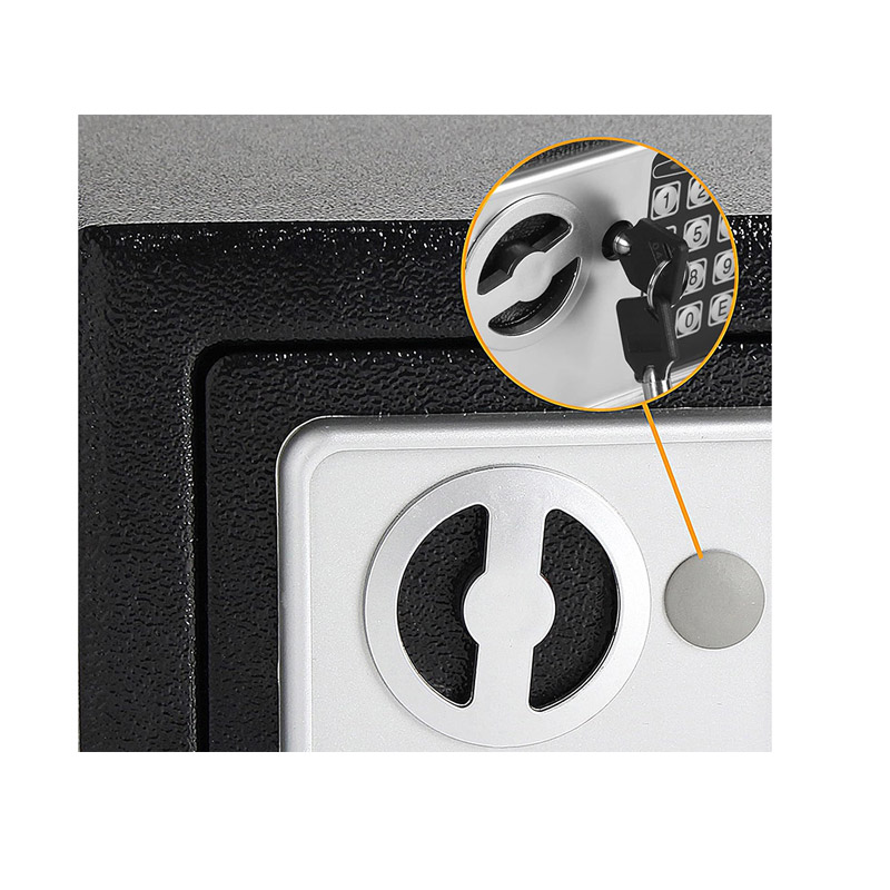 Το χρηματοκιβώτιο μπορεί να στερεωθεί σε τοίχο ή άλλη επιφάνεια. Παρέχεται με 2 ακίδες στερέωσης για να μπορεί να στερεωθεί με ασφάλεια στον τοίχο. Μπορεί να ανοίξει σε περίπτωση έκτακτης ανάγκης χρησιμοποιώντας τα κλειδιά που περιλαμβάνονται στη συσκευασία.