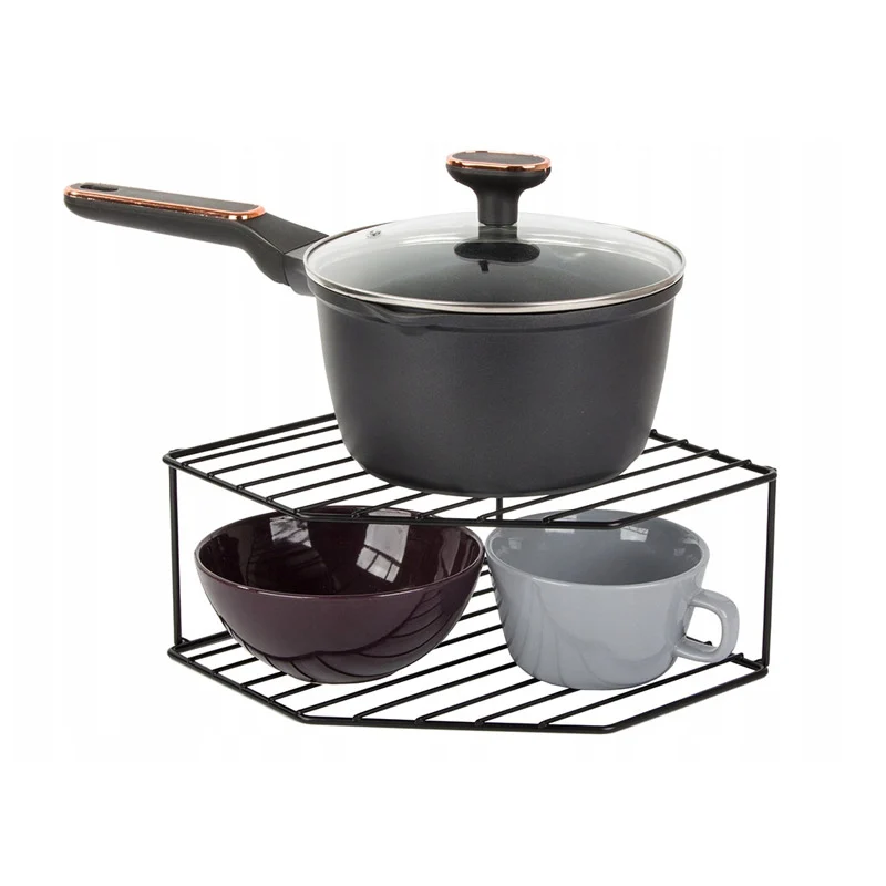 Το γωνιακό μεταλλικό ράφι πάγκου κουζίνας, είναι κατασκευασμένο από ανθεκτικό μέταλλο, ανθεκτικό στη σκουριά και τη φθορά, που εγγυάται μακροχρόνια χρήση. Έχει σχεδιαστεί για να εκμεταλλεύεται στο έπακρο τον διαθέσιμο χώρο, επιτρέποντάς σας να αποθηκεύετε μια ποικιλία από μαγειρικά σκεύη και αξεσουάρ τακτοποιημένα και τακτοποιημένα. Με 2 επίπεδα, σας επιτρέπει να αποθηκεύετε τα μαγειρικά σας σκεύη, εξοικονομώντας πολύτιμο χώρο στα ντουλάπια της κουζίνας ή στον πάγκο σας.