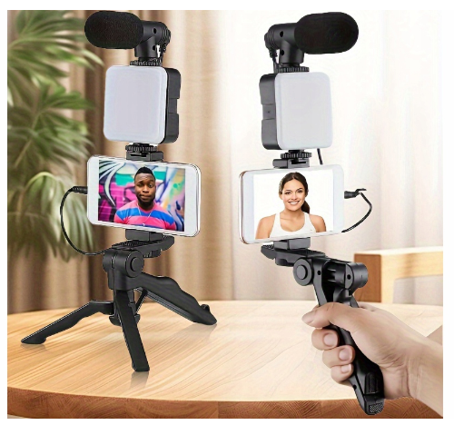 Το Vlogging Kit AY49 είναι μια ολοκληρωμένη λύση για δημιουργούς περιεχομένου που περιλαμβάνει τρίποδο με βάση κινητού, κατευθυντικό μικρόφωνο, LED λάμπα με 10 επίπεδα φωτεινότητας, τηλεχειριστήριο Bluetooth και καλώδιο AUX 3.5mm. Κατασκευασμένο από υψηλής ποιότητας υλικά, με εργονομικό σχεδιασμό και εύκολη εγκατάσταση, το σετ προσφέρει επαγγελματικό ήχο, φωτισμό και σταθερότητα, ιδανικό για vlog, live streaming, social media, podcasts και λήψεις σε χαμηλό φωτισμό.