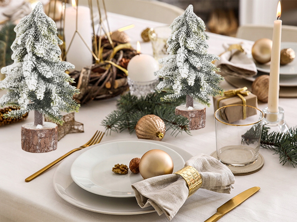 Χάρη στον μεγάλο αριθμό κλαδιών, το μίνι χριστουγεννιάτικο δέντρο είναι πυκνό και αυθεντικό. Τα κλαδιά του είναι καλυμμένα με λευκό χιόνι, καθιστώντας το δέντρο πολυτελές και ιδιαίτερα γιορτινό.