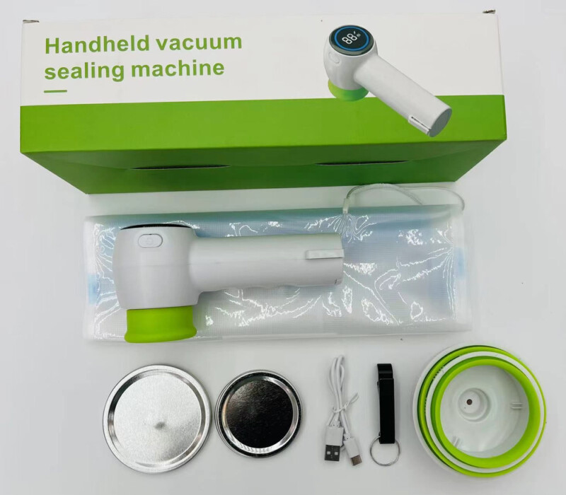 - Πλήρες Σετ: Περιλαμβάνει μηχανή σφράγισης, καπάκια κενού, καλώδιο USB και σακούλες σφράγισης.