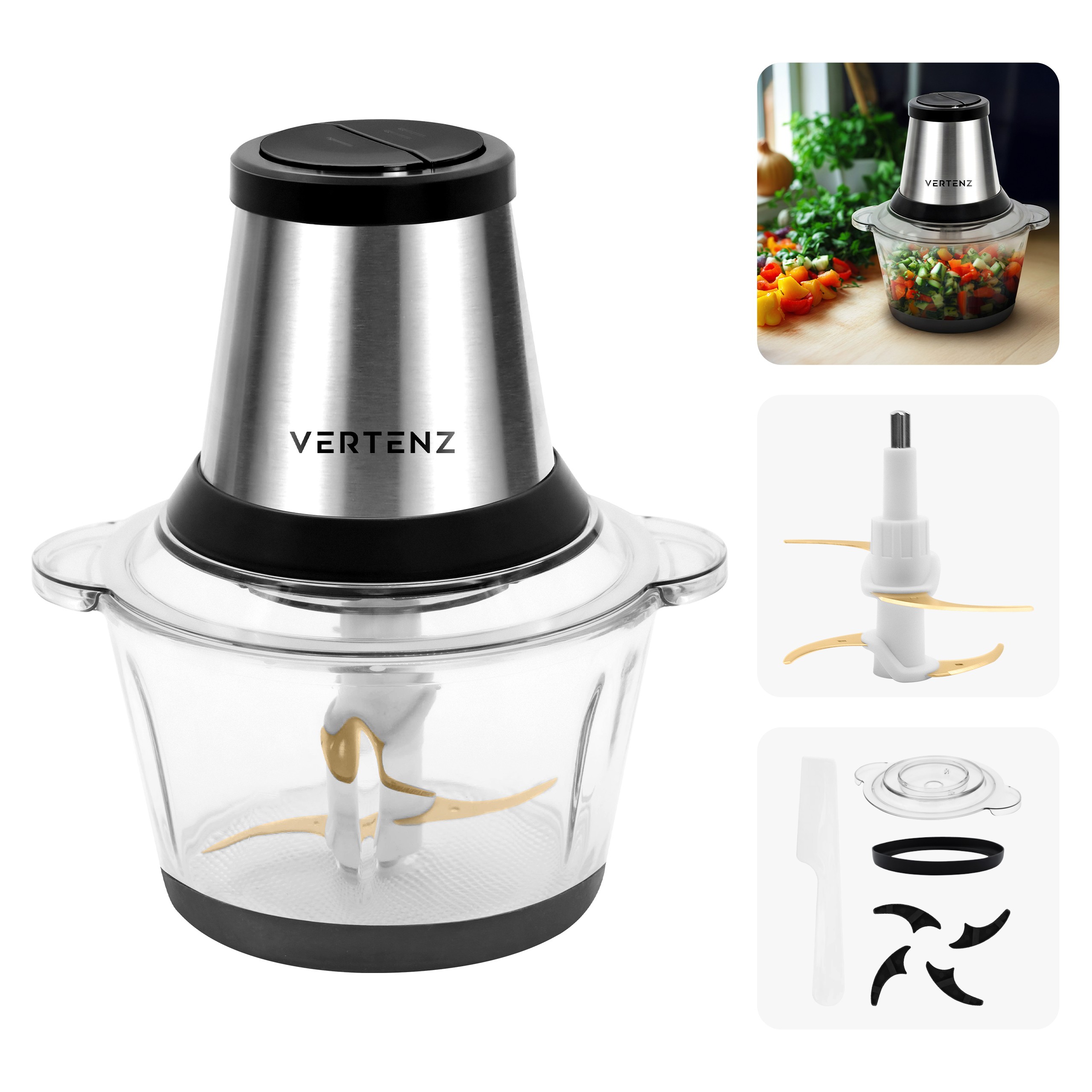 Ψάχνετε για συσκευή που να κόβει λαχανικά, να αναμειγνύει φρούτα και να θρυμματίζει κρέας ή κατεψυγμένα προϊόντα; Το VERTENZ Chop 20 είναι ο πολυλειτουργικός βοηθός κουζίνας 7 σε 1 που κάνει την καθημερινή μαγειρική απόλαυση!