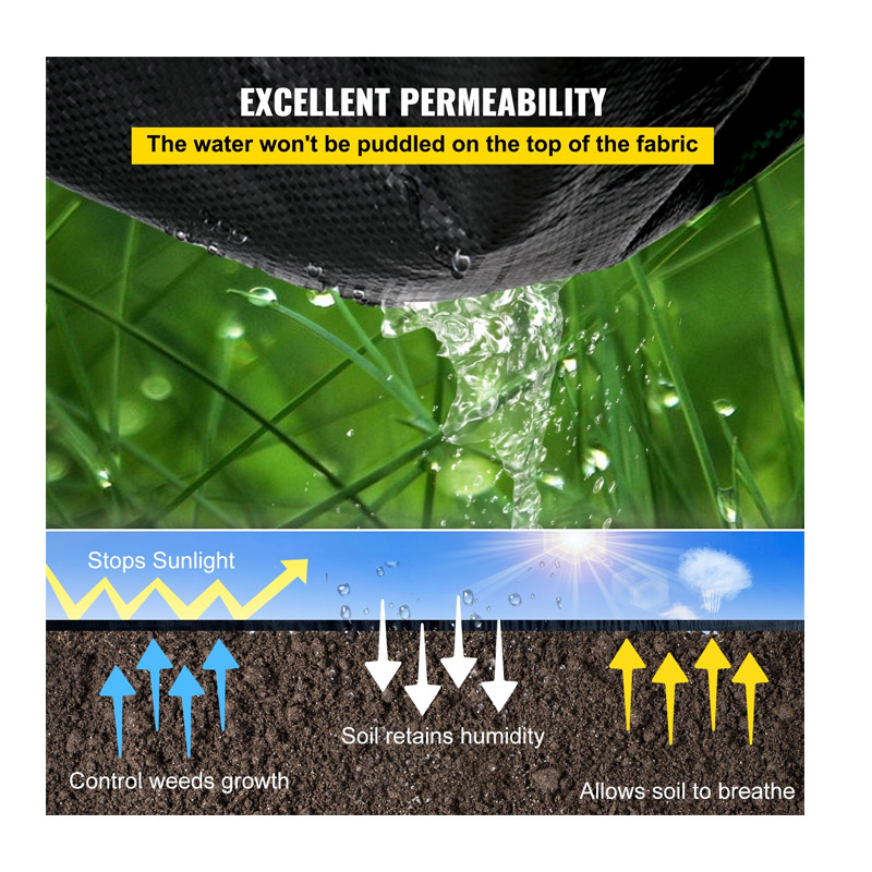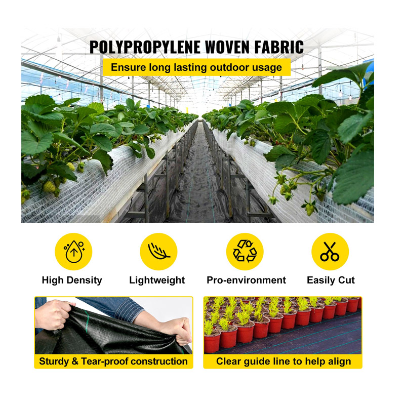 Το ύφασμα εδαφοκάλυψης, από την εταιρία VEVOR, είναι κατασκευασμένο από υψηλής ποιότητας υφαντό ύφασμα πολυπροπυλενίου, υψηλής πυκνότητας, το οποίο είναι ανθεκτικό στις καιρικές συνθήκες, ελαφρύ και ανθεκτικό στη διάβρωση. Προστατεύει τον κήπο και τα παρτέρια σας από τα ζιζάνια, αυξάνοντας σημαντικά την παραγωγικότητα και την αποτελεσματικότητά σας.