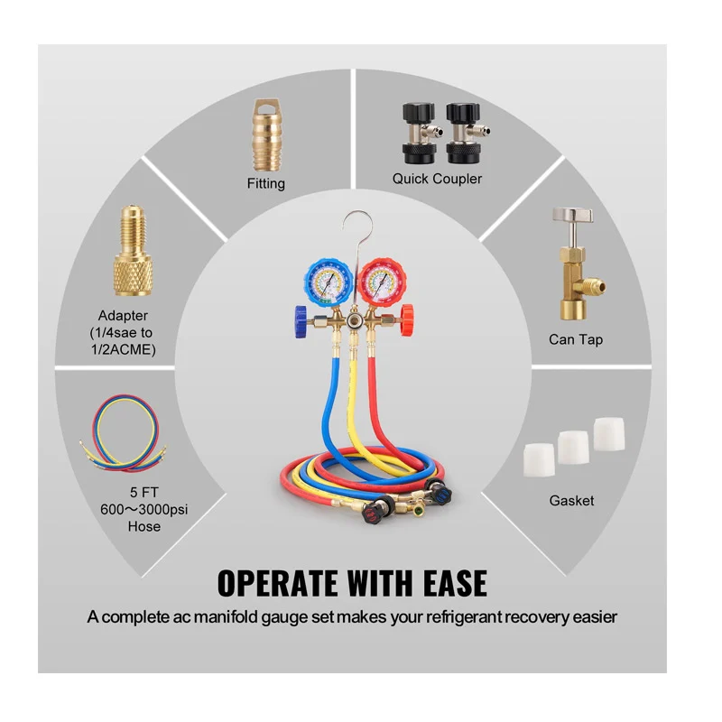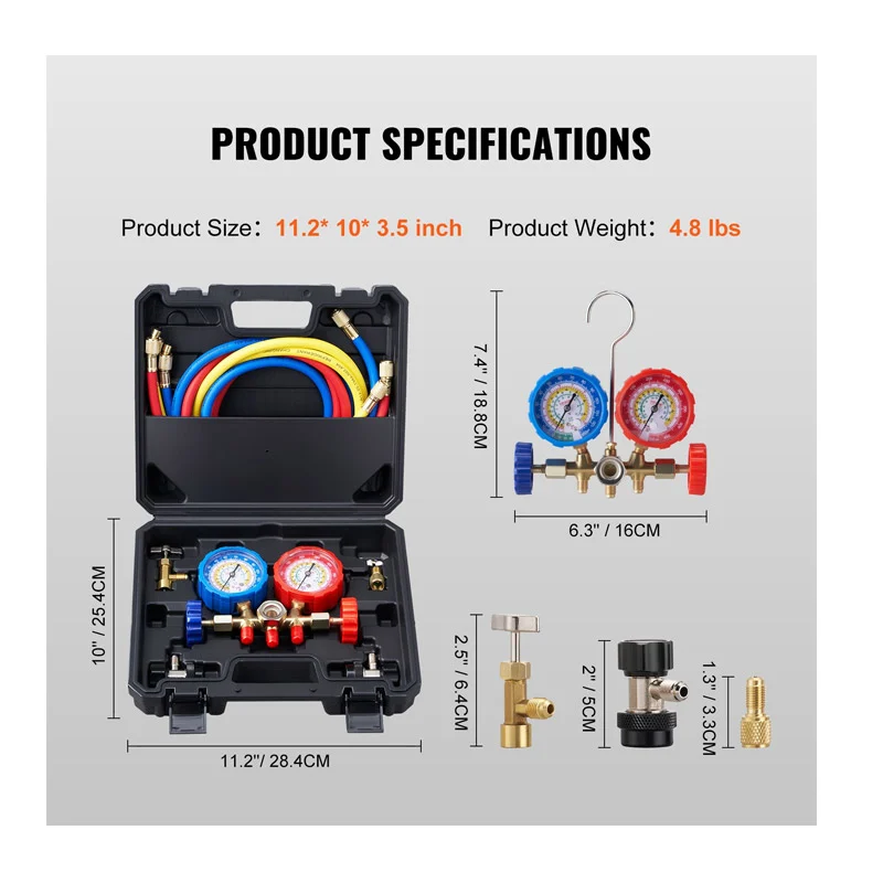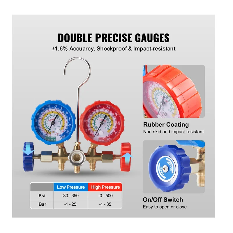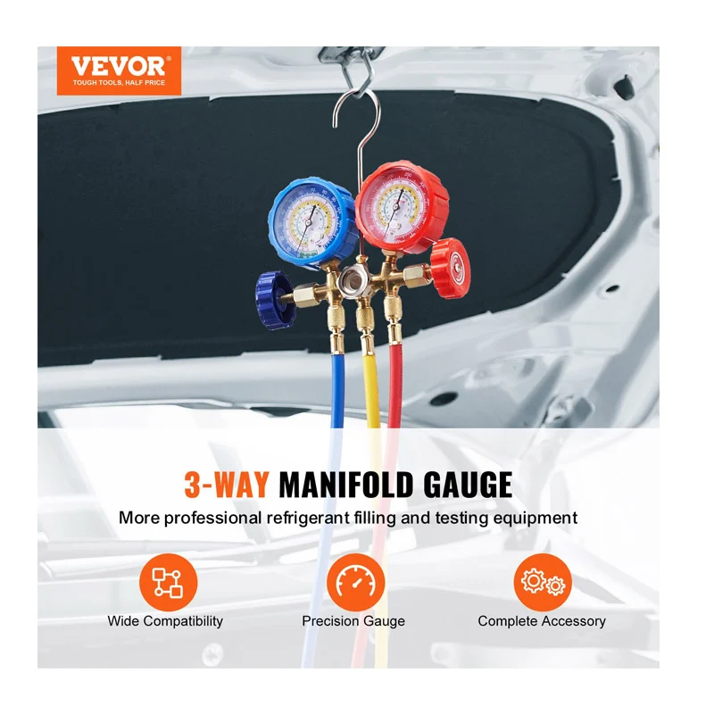 Σετ Ελέγχου Πίεσης Κλιματιστικών 3 Εξόδων με Μανόμετρα VEVOR STLLMBZZLJ4EHROEOV0