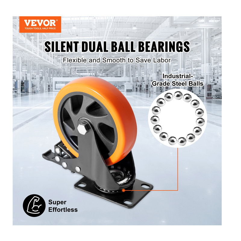 Το σετ, από την εταιρία VEVOR, περιλαμβάνει 4 ροδάκια βαρέως τύπου, ιδανικά για μία ποικιλία χρήσεων DIY, σε διάφορες βιομηχανίες, ενώ μπορούν να χρησιμοποιηθούν σε σπίτια, σχολεία, γκαράζ, καταστήματα, νοσοκομεία και αλλού. Τα ροδάκια, γλιστρούν ομαλά, αθόρυβα και διαθέτουν ενισχυμένο σύστημα φρένων A/B. Συνοδεύονται από ατσάλινο στήριγμα που ενισχύει περαιτέρω τη δύναμη και την αντοχή τους. Και τα 4 ροδάκια μπορούν να σηκώσουν βάρος έως 816 Kg (204 Kg το καθένα).