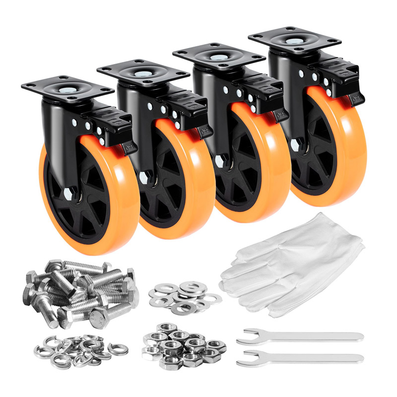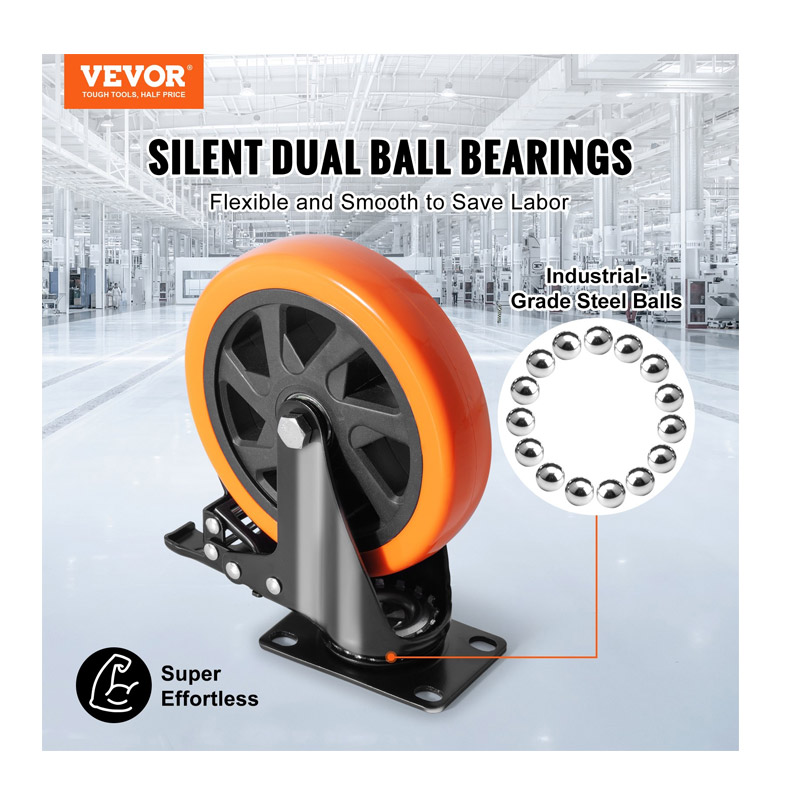 Το σετ, από την εταιρία VEVOR, περιλαμβάνει 4 ροδάκια βαρέως τύπου, ιδανικά για μία ποικιλία χρήσεων DIY, σε διάφορες βιομηχανίες, ενώ μπορούν να χρησιμοποιηθούν σε σπίτια, σχολεία, γκαράζ, καταστήματα, νοσοκομεία και αλλού. Τα ροδάκια, γλιστρούν ομαλά, αθόρυβα και διαθέτουν ενισχυμένο σύστημα φρένων A/B. Συνοδεύονται από ατσάλινο στήριγμα που ενισχύει περαιτέρω τη δύναμη και την αντοχή τους. Και τα 4 ροδάκια μπορούν να σηκώσουν βάρος έως 1272 Kg (318 Kg το καθένα).