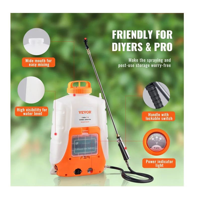 Ο ψεκαστήρας πλάτης, από την εταιρία VEVOR, διαθέτει ανθεκτική μπαταρία ιόντων λιθίου 8Ah, με την οποία μπορείτε να ψεκάζετε για 4-6 ώρες με μία μόνο φόρτιση. Η πίεση 90 PSI της αντλίας επιτρέπει στον ρυθμό ροής να φτάσει έως και 4.1 Lt/min. Η χωρητικότητα 15 Lt είναι αρκετά μεγάλη για να καλύψει τις καθημερινές σας ανάγκες, εξοικονομώντας εργασία και χρόνο.