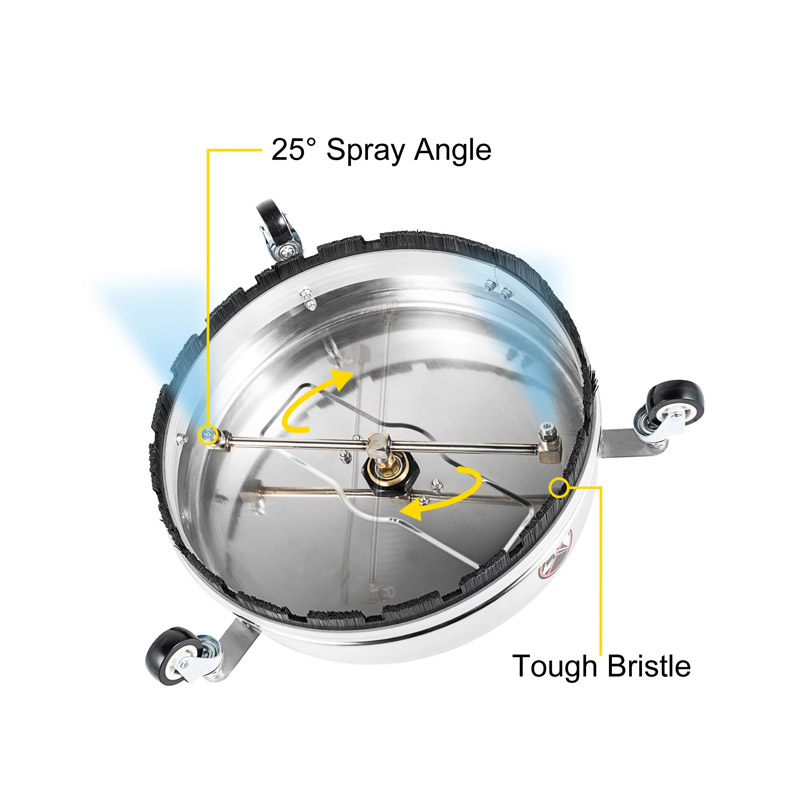 Το καθαριστικό μηχάνημα επιφάνειας, από την εταιρία VEVOR, είναι κατασκευασμένο από συμπαγή ανοξείδωτο ατσάλι 304 και διαθέτει περιστροφικό βραχίονα για να ενισχύσει τη σταθερότητά του πιο αξιόπιστη από άλλα καθαριστικά που χρησιμοποιούνται. Η περιστροφική ράβδος με δύο ακροφύσια στομίου έχει γωνία ψεκασμού 25° για ευρεία επιφάνεια καθαρισμού.