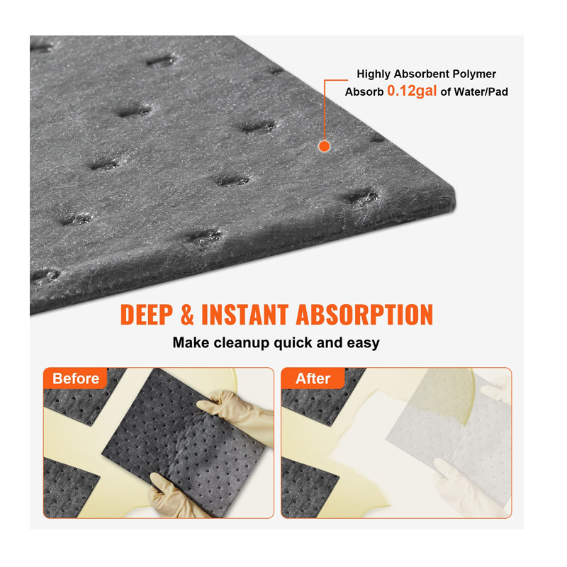 Το σετ, από την εταιρία VEVOR, αποτελείται από 100 απορροφητικά πανάκια, που σας βοηθούν να καθαρίσετε διάφορες διαρροές (υγρά/λάδια) σε διάφορες περιβαλλοντικές ρυθμίσεις, καθιστώντας τα απαραίτητα εργαλεία για τη διατήρηση της καθαριότητας. Τα πανάκια, είναι επαναχρησιμοποιήσιμα, ξεπερνώντας τις προσδοκίες αντοχής, εξοικονομώντας κόστος και ωφελώντας σας μακροπρόθεσμα.