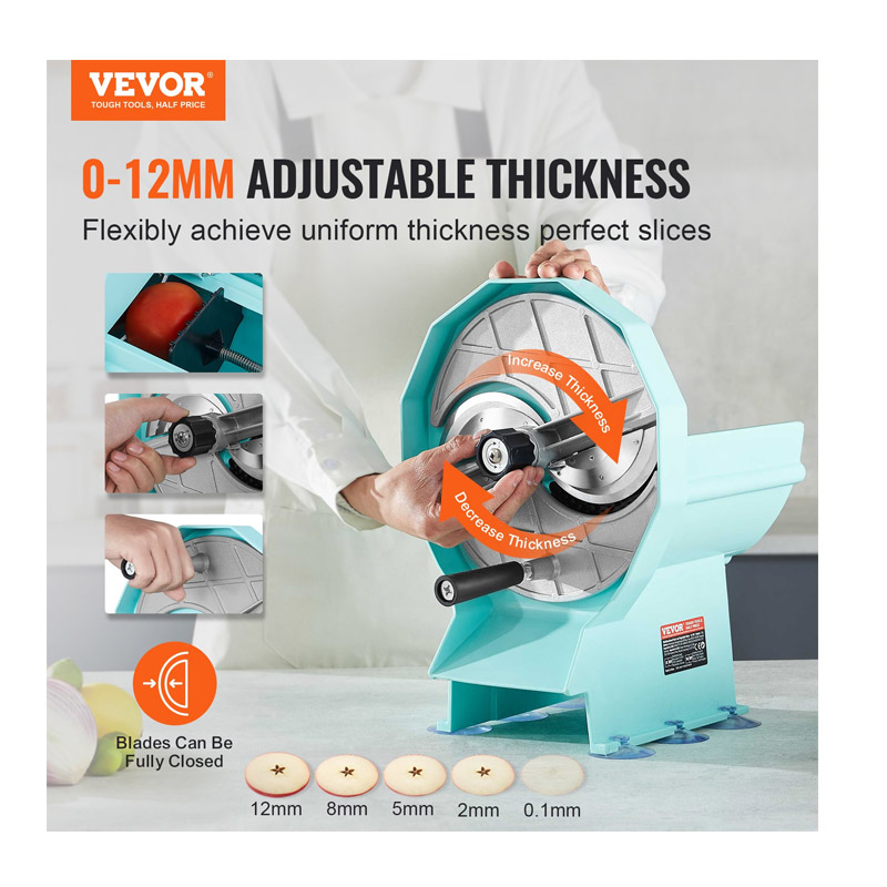 Ο χειροκίνητος κόπτης, από την εταιρία VEVOR, σας επιτρέπει να ρυθμίζετε αβίαστα το πάχος κοπής, διασφαλίζοντας τέλεια και ομοιόμορφα κομμένα φρούτα και λαχανικά. Επιτρέποντάς σας να ελέγχετε το πάχος κοπής εντός 0-12 mm, είτε προτιμάτε λεπτές φέτες είτε χοντρές, η απλή λειτουργία καλύπτει αποτελεσματικά τις ανάγκες σας.