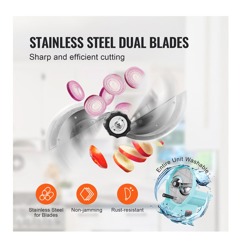 Οι 2 λεπίδες είναι κατασκευασμένες από premium ανοξείδωτο ατσάλι 420J2, εξασφαλίζοντας αιχμηρές και ακριβείς κοπές με καθαρές και λείες άκρες σε κομμένα φρούτα και λαχανικά. Είναι επίσης εξαιρετικά ανθεκτικές και καθαρίζονται εύκολα – απλώς ξεπλύνετε ολόκληρο τον κόπτη φρούτων λαχανικών με νερό στο νεροχύτη, χωρίς να ανησυχείτε για τη σκουριά, εξασφαλίζοντας μακροζωία ακόμη και με την καθημερινή χρήση.