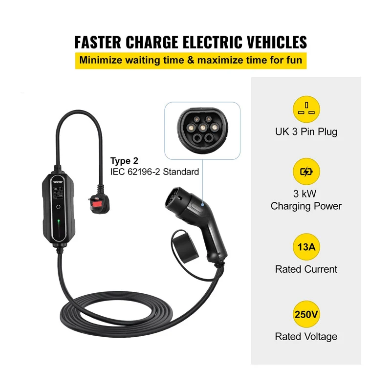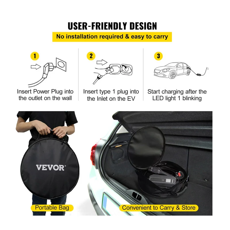 Ο φορητός φορτιστής EV, από την εταιρία VEVOR, έχει σχεδιαστεί για να κάνει τη φόρτιση EV γρήγορη και χωρίς κόπο. Με ένα βύσμα EU 2 Pin, μπορεί να φορτίσει το αυτοκίνητό σας πιο γρήγορα από οποιονδήποτε άλλο φορτιστή EV που έχετε χρησιμοποιήσει στο παρελθόν. Ο φορτιστής είναι συμβατός με τα περισσότερα ηλεκτρικά αυτοκίνητα, τα οποία πληρούν το πρότυπο IEC 62196-2. Ενδεικτικά, είναι κατάλληλος για BMW, Audi, Citroen, Ford, Harley-Davidson, Honda, Hyundai, Jaguar, Kia, Land Rover, LEVC, Lexus, Mazda κ.λπ.