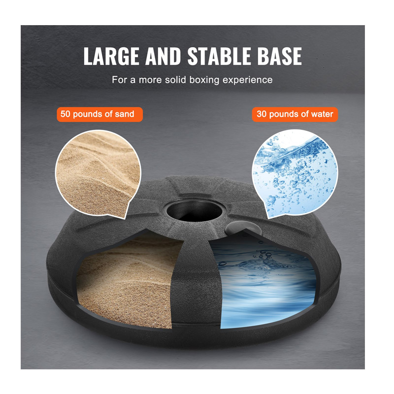 Το αχλάδι συνοδεύεται από βεντούζες που προσαρμόζονται με ασφάλεια στο έδαφος, εξαλείφοντας τις ανησυχίες σχετικά με την κίνηση κατά τη διάρκεια της προπόνησης. Η βάση μπορεί να γεμίσει με νερό ή άμμο για να διατηρηθεί η σταθερότητα. Οι 6 βεντούζες στο κάτω μέρος αποτρέπουν τις γρατσουνιές στο πάτωμα και εξασφαλίζουν σταθερότητα κατά τη διάρκεια του μποξ.