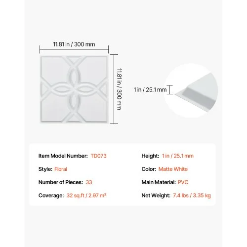 VEVOR Πάνελ Τοίχου 3D 33-Τεμαχίων 11.81×11.81” PVC 32 Τ.Π. Κάλυψη Λευκό Floral PVC3DQBXDYSJ05PSDV0