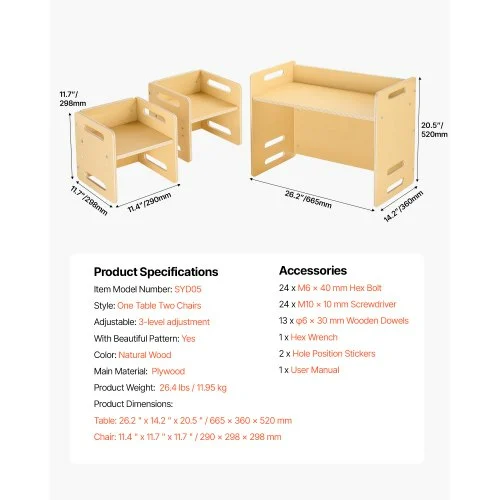 Ανακαλύψτε το πολυλειτουργικό σετ τραπεζιού και καρέκλας VEVOR, ιδανικό για μικρά παιδιά. Κατασκευασμένο από υψηλής ποιότητας ξύλινα υλικά, προσφέρει σταθερή και ασφαλή υποστήριξη.