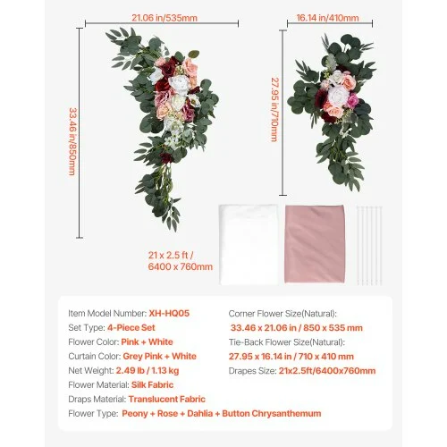 VEVOR Σετ Τεχνητών Λουλουδιών Γάμου Ροζ με 2 Λουλούδια & 2 Υφάσματα HLGMHTJ4JTFSPCKX4V0