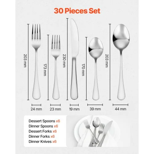 VEVOR Σετ Μαχαιροπίρουνα Ανοξείδωτο Ατσάλι 30 Τεμαχίων για 6 Άτομα 430BXGCJTZBXZMV36V0