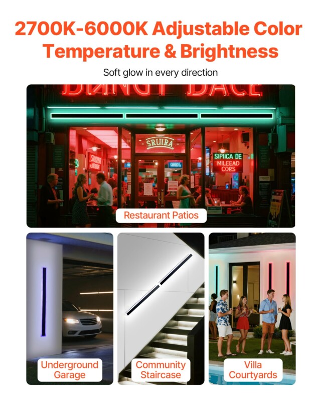 Τα εξωτερικά μας φωτιστικά τοίχου προσφέρουν απαλή ρυθμιζόμενη θερμοκρασία χρώματος από 2700K έως 6000K, με ευρεία ρύθμιση φωτισμού από ψυχρό σε ζεστό. Ιδανικά τόσο για οικιακό φωτισμό όσο και για τη δημιουργία ατμόσφαιρας σε εμπορικούς χώρους.