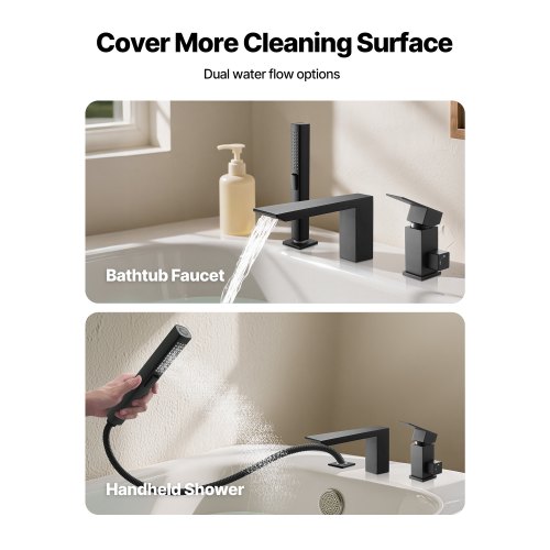 VEVOR Ρωμαϊκή Μπαταρία Μπανιέρας 3 Οπών σε Μαύρο Ματ με Ντουζιέρα DFPTKDHS1GSB44J8J002V0