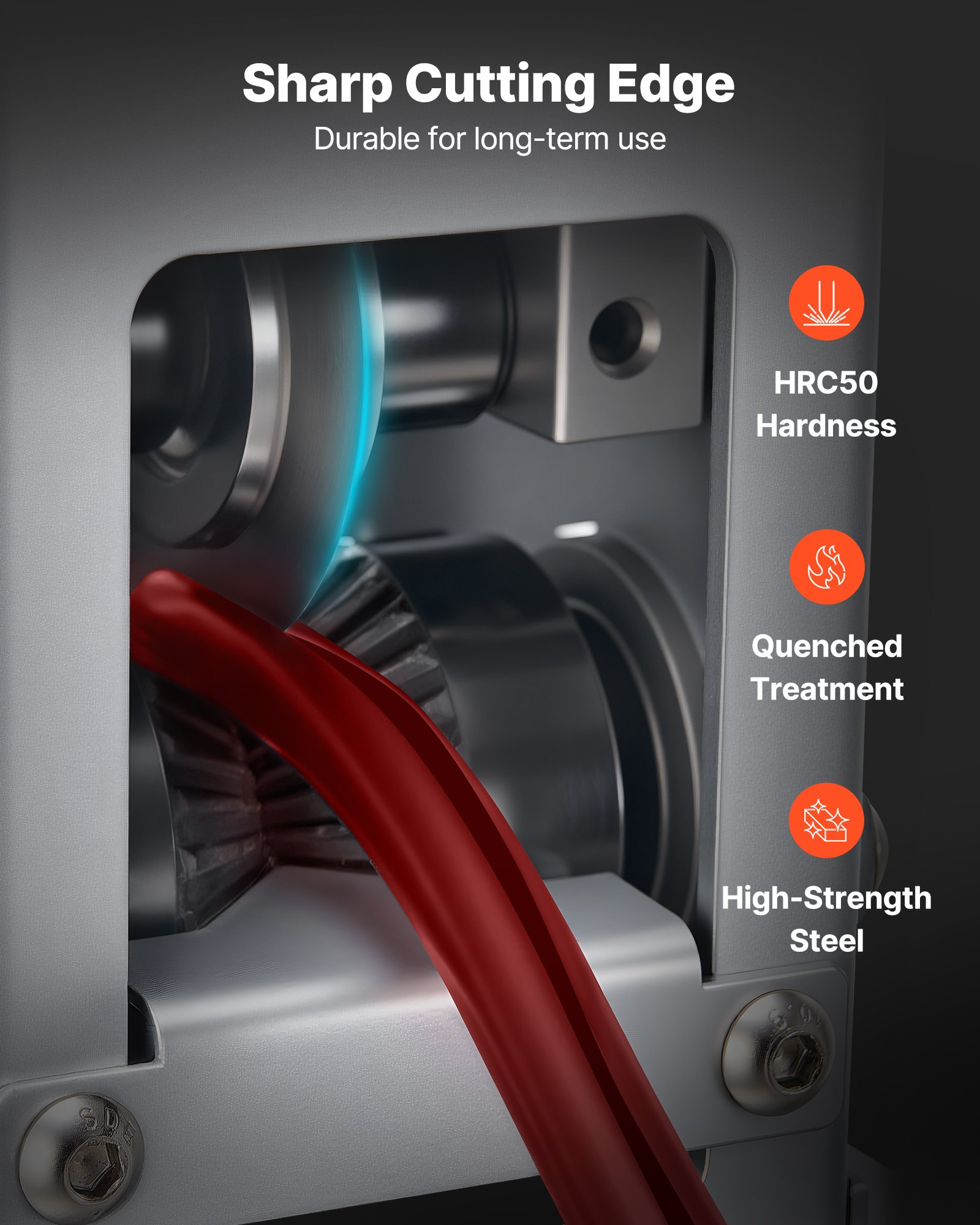 Η χειροκίνητη μηχανή απογύμνωσης καλωδίων διαθέτει λεπίδα υψηλής αντοχής, σκληρυμένη έως HRC50, που προσφέρει αιχμηρή και διαρκή κοπή. Η λεπίδα είναι ανθεκτική στη φθορά και διατηρεί την ακρίβειά της ακόμη και μετά από μακροχρόνια χρήση.