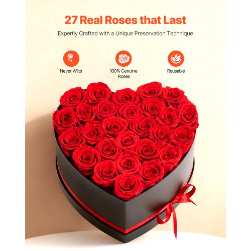 VEVOR Αιώνια Τριαντάφυλλα: 27 Διατηρημένα Τριαντάφυλλα σε Σχήμα Καρδιάς – Ιδανικό Δώρο για Γυναίκες στις Επετείους, Ημέρα του Αγίου Βαλεντίνου, Χριστούγεννα. YSHLHK27DHSXNUD9H001V0
