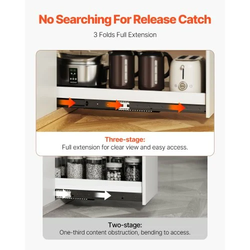 Αναβαθμίστε την αποθήκευση σας με τις υποστηριζόμενες συρόμενες ράγες συρταριών VEVOR. Ιδανικές για κάτω από τις σκάλες, αυτές οι ράγες προσφέρουν εξαιρετική αντοχή και σταθερότητα.