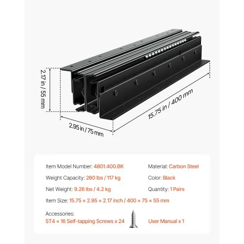 VEVOR Συρόμενοι Οδηγοί Συρταριών 16″ Υποσκαφής για Ντουλάπια Σκάλας, Φορτίο 260 Λίβρες LTJHG16YC260XCXUUV0