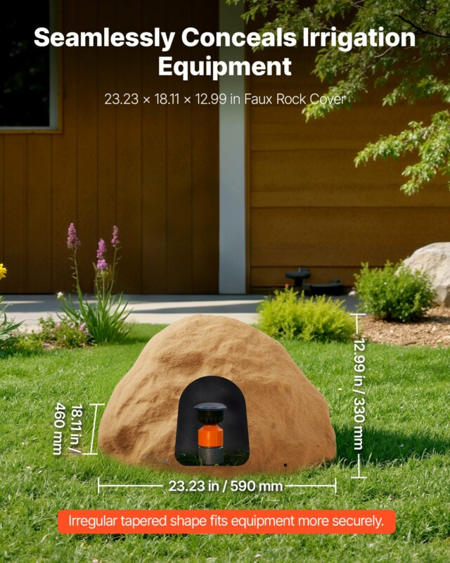 Μεσαίου Μεγέθους για Ευρείες Χρήσεις: Με διαστάσεις 59 x 46 x 33 cm, το κάλυμμα βράχου καλύπτει κοινές εγκαταστάσεις όπως αντλίες, ηλεκτρικά κουτιά, φρεάτια και βαλβίδες ποτίσματος. Παρακαλούμε μετρήστε την εγκατάσταση σας πριν την τοποθέτηση.