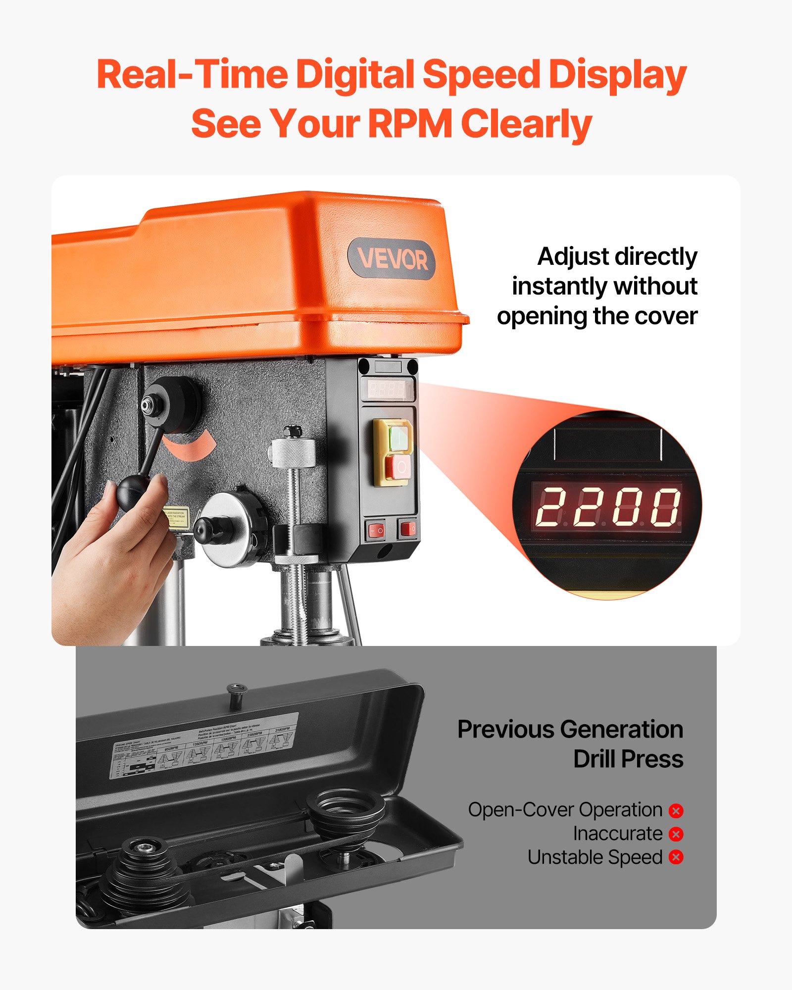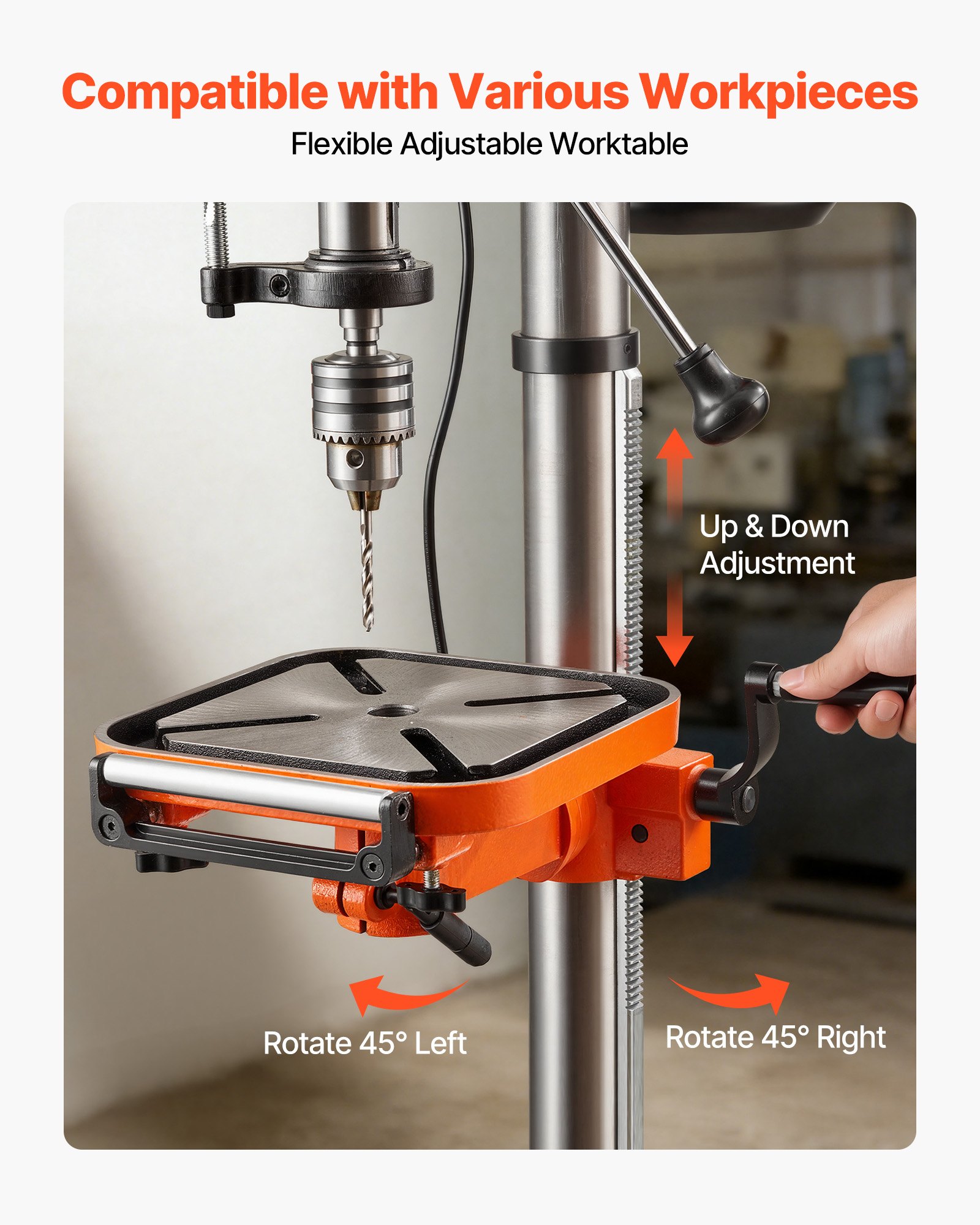 VEVOR Επιτραπέζιο Δράπανο 550W με Μεταβλητή Ταχύτητα 340-2200 RPM, Κλίση Τραπεζιού 0-45°, Laser & LED Φωτισμός, για Ξυλουργική & Μεταλλικές Εργασίες TSZC550W33ABLIVJ5001V2