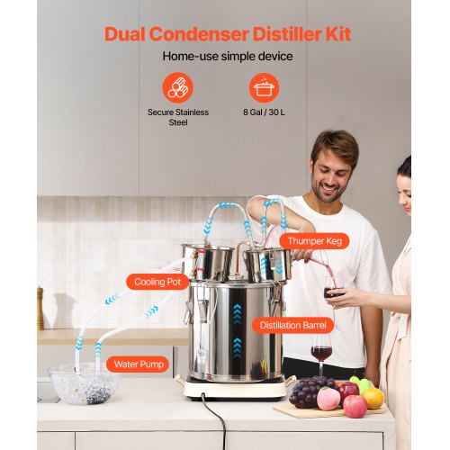 VEVOR Αποστακτήρας Αλκοόλ 8 Γαλόνια με Δοχείο Θάμπερ & Αντλία Νερού 8W SLNTZLQYS8JLFQ1JNV2