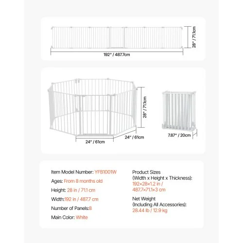 VEVOR Παιδική Πύλη 192 Ίντσες Πλάτος 28 Ίντσες Ύψος 8 Πάνελ Λευκή LGXCWZLBS28I7K7ISV0
