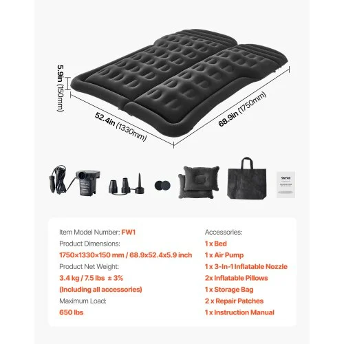 VEVOR Φουσκωτό Στρώμα Αυτοκινήτου για Ταξίδια και Κάμπινγκ HBXKZRHSTYDZ7UZS4V9