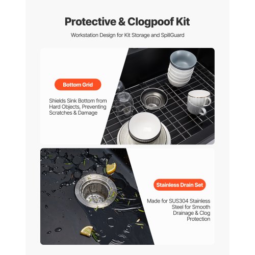 VEVOR Νεροχύτης Κουζίνας Γρανίτη 84 cm Μονής Λεκάνης για RV Μπαρ HGYCFSCTSPDC34FVJ001V0
