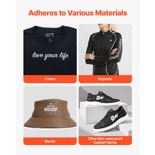 Ανακαλύψτε την εξαιρετική ποιότητα του VEVOR Heat Transfer Vinyl, το οποίο ξεχωρίζει για το λαμπερό γυαλιστερό του φινίρισμα και την εύκολη χρήση του. Η ιδανική λύση για συσκευές σιδερώματος, ακόμα και για τους αρχάριους.