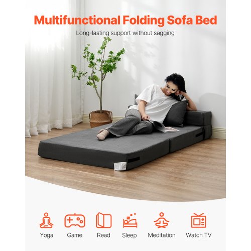 VEVOR Πτυσσόμενος Καναπές-Κρεβάτι 3-σε-1 με 2 Μαξιλάρια Σκούρο Γκρι Διπλό ZDSFDDZSFTWI8JB3CV0