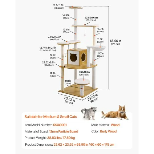 Ανακαλύψτε το απόλυτο καταφύγιο για τη γάτα σας με το VEVOR Μεγάλο Δέντρο Γάτας. Σχεδιασμένο για να προσφέρει ατελείωτες ώρες διασκέδασης και χαλάρωσης, αυτός ο πολυεπίπεδος πύργος είναι το ιδανικό μέρος για παιχνίδι, ξεκούραση και εξερεύνηση.