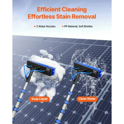 Ανακαλύψτε την απόλυτη λύση για τον καθαρισμό των ηλιακών πάνελ σας με το VEVOR Κιτ Καθαρισμού Ηλιακών Πάνελ. Με το τηλεσκοπικό κοντάρι που εκτείνεται από 7 έως 30 πόδια, μπορείτε να φτάσετε ακόμα και τα πιο δύσκολα σημεία με ευκολία.