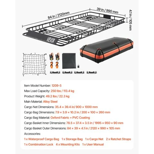 VEVOR Καλάθι Φορτίου Οροφής 84 x 39 x 4.1 in HKSXLK8439INHXZR1V0
