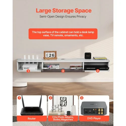 VEVOR Επιτοίχια Τηλεοπτική Βάση 55 ιντσών Κέντρο Ψυχαγωγίας με Τροφοδοσία και Οπή Καλωδίου