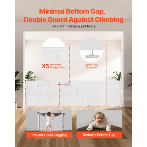 Τηλεσκοπική Πολυμορφία: Η λευκή πόρτα δίχτυου μπορεί να εκτείνεται έως και 110 ίντσες πλάτος και έχει ύψος 34 ίντσες, επιτρέποντάς σας να προσαρμόσετε το μέγεθος του ανοίγματος όπως χρειάζεται. Το τηλεσκοπικό σχέδιο την καθιστά εύκολη στην αποθήκευση όταν δε χρησιμοποιείται, χωρίς να καταλαμβάνει χώρο.