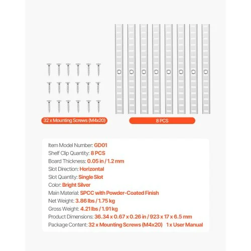 Ράφι VEVOR Track 36.3-ίντσες 8 Πακέτο Ρυθμιζόμενο Ατσάλινο Τοίχου