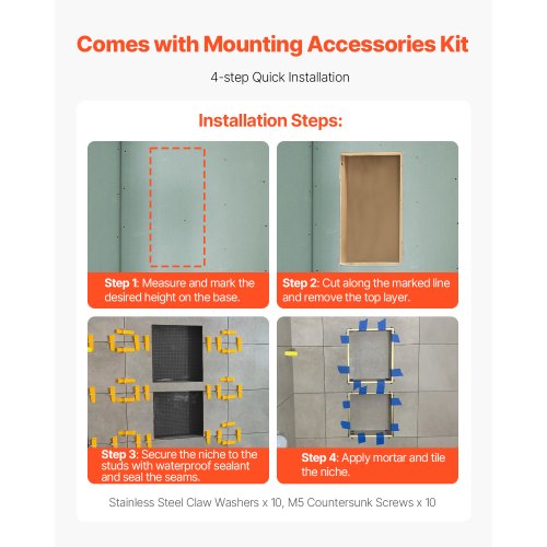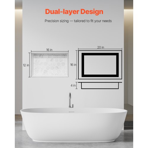 VEVOR Εντοιχισμένο Ράφι Ντους 40.6 x 50.8 x 10.2 cm για Μπάνιο SLLYBK2C16INJ0D06001V0